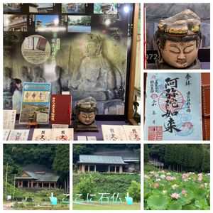 臼杵石仏🤳① ハスの花畑🌸🎶 午前中に…やっと〜見れました(^^) 石仏もと思いましたが…🥵むし暑い 体力無し💦 秋に…😅 売店で季節限定、ハスの花御朱印購入👍