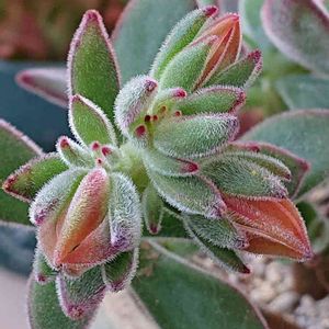 たしか、エケベリア・ハムシーだったよね🌱 寒さに赤くなった 縁取りが可愛いモフモフくん 我が家のきっと、多肉1号 10年ほど 冬も外で雨雪にも元気な💚多肉くん