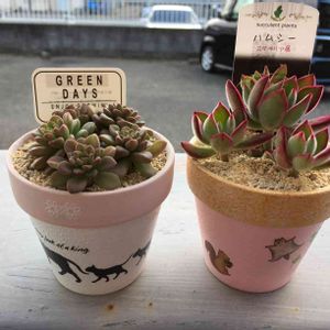 植え替えのための土を買いに行ったホームセンター ちょっと多肉ちゃんを見ていこうと多肉コーナーへ そしたら入荷したての多肉ちゃんがいっぱい、それも見たことない子もたくさん😆 もー欲しくなっちゃうよね〜😅 迷いに迷ってハムシーちゃんをお持ち帰り 赤い縁取りが可愛い😍 家に帰って早速植え替えました ついでにジョイスツーロも お部屋組がまた増えました😅😅😅