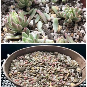 こんばんは🌙*.。★*゚ 今日も寒かった~💦 一日中、曇り空で19℃までしか上がらず☁☁☁ 半袖なんか出番ないわ🎽 ちょっと💦 雑草も混じってる(*≧艸≦)ププッ 極寒⛄️❄️✨冬はマイナス18℃まで下がっても~地植えにしてる子持ち蓮華錦🍀 色んなセダムと競争しながら👊🏻 冬を越して出て来るょ🍀 右上にいるのは💦 もしかして💦カメレオン錦かもね😅 タグがぶっ飛んで🍃🌀🍃わからない🤔 子持ち蓮華も、これからドリって来るんだろうなぁ😚 それも、楽しみだわ🌸