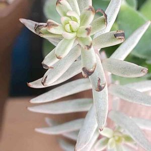 旅行から帰ってきてベランダのタニパト だいたい無事だったけどカメレオン錦が焦げてた😑 ちゃんと遮光シートかけてたのに焦げちゃうなんて 網目の間から光が入ったのかな?
