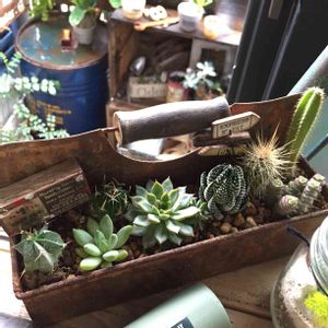 最近植物が気になってる友人のお誕生日プレゼントに✨ 自分好みのものになってしまった、、けど喜んでくれました☺︎ (左のふちが白くて小ちゃいお花が咲いてるサボテンに一目惚れ♡)