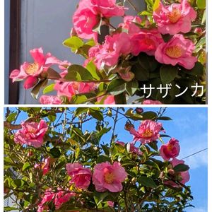 おはようございます😃 今日のお花🩷サザンカ🩷 ご近所さんのお庭です🩷 夕陽に照らされて綺麗でした🩷