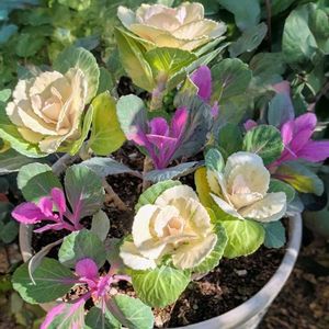 おはようございます😃 今日の庭から💚💜 葉牡丹💚💜 今年は種まきに失敗したので、 生協さんで購入しました。 小型で可愛いい❗💜💚