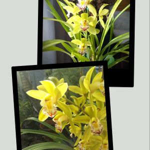 おはようございます😃 今日のお花💚💛 シンビジウム💚💛 今年は蕾が15cmほどに立って来た状態で、お正月に間に合いますかしら。❓ 過去picです。