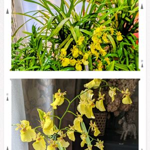 おはようございます😃 今日のお花💛 オンシジウム💛💛💛 この子は、9月末からもう3ヶ月もの間、咲き続けています💛💛 オンシジウム、デンドロビウム、シンビジウム、の三種類が部屋を占領しています😅