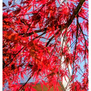 おはようございます😃 今朝の庭から♥ モミジ(紅枝垂れ)♥ 朝日を透かして綺麗です。 昨日も落ち葉掃除しましたが、 今日の☔でまた沢山の葉っぱ が落ちるでしょう。