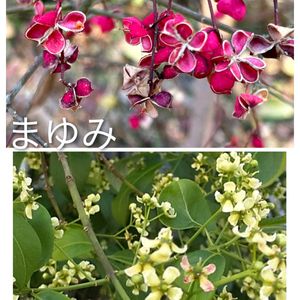 おはようございます😃 今日のお花♥マユミ♥ 知人宅のお庭♥ 色づく前と色づいた姿。 。