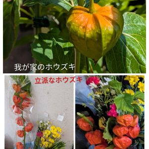 おはようございます😃 今日のお庭から🧡 ホウズキ🧡 我が家の初ホウズキは お盆に使えませんでした。💦 買ってきた立派なホウズキ🧡 一本1000円也💦 来年は自家製で賄いたいな〜💦