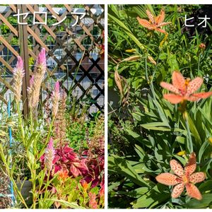 おはようございます😃 ヒオウギは一日花なのでまとまって咲くpicのタイミングが難しい💦 セロシアは一本だけ凄く大きく成りました🩷