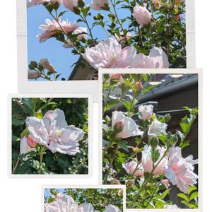 おはようございます😃 今日のお花🩷芙蓉🩷 ご近所さんの酔芙蓉🩷 と和紙貼り絵🩷
