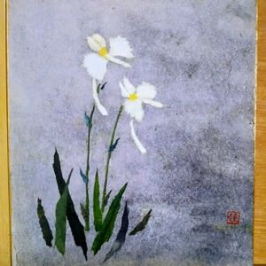 おはようございます😃 今日のお花🤍 サギソウ🤍 和紙貼り絵🤍 昔我が家に居てくれた サギソウ🤍をスケッチ