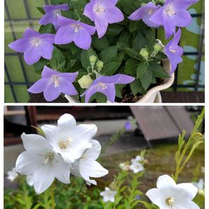 おはようございます😃 今日から九月💜 残暑お見舞い申し上げます💜 ご近所さんの玄関先. 涼しげな桔梗がお出迎え💜 白い桔梗、涼し気です。💟