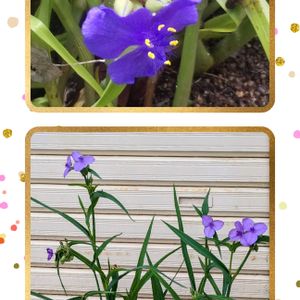 今日のお花💜 ムラサキツユクサ💜 昔は野原に沢山咲いていて子供達か黒い実でネックレスを作ったりしましたが、最近は、植木鉢に植えて鑑賞する時代になったようですね、?。😅