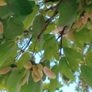 【発見 トウカエデの実】 台風後の青空 『花かな?』と思ったのはトウカエデの実でした。 緑と薄い赤のコラボ ステキですね🎵 実の翼部分が紅赤色の期間はごく短時日で、すぐに灰色がかった焦げ茶色に変わるそうです。 何年もこの道を通っているのに、今まで気付きませんでした。