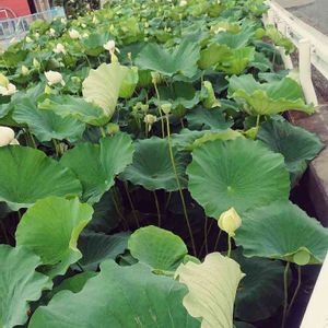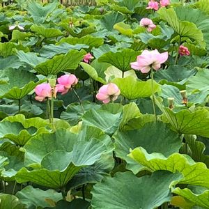 連投すみません💦 娘を見送ったあと、息子と2人で少し遠回りをして蓮池を見に行って来ました💖 青々と繁っている葉の中で淡いピンク色の蓮がたくさん咲いていて、とても綺麗でした😌 息子はベビーカーだったので丁度目線がガードレールの位置😅 とても暇そうにしていました🙏