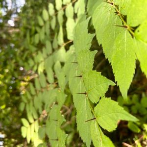 タラノキって葉っぱが出てもこんなにトゲトゲなんですネ