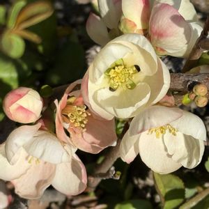 (*^▽^)/ こんにちゎ \(^▽^*) 今日は朝から晴れたり曇ったりしていて体感的にはまだまだ寒いです。🤭 それでも久しぶりに外に出てみたら花々が咲き出していました♪ ① ボケ ②③ シバザクラ