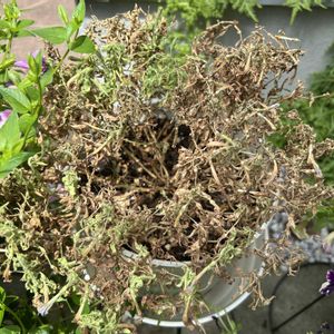 草花の寄せ植えですが、全部のお花が綺麗に咲き揃うのは難しい😓 今は、ブルーファンフラワー、スカエボラが良き💙 イソトマは切り戻してやっとポツポツ カリブラコアは真ん中が空洞💦 寄せ植えは難しい🤔