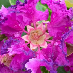 庭の百日紅が見頃です。濃い桃色の縮れた花が綺麗です。