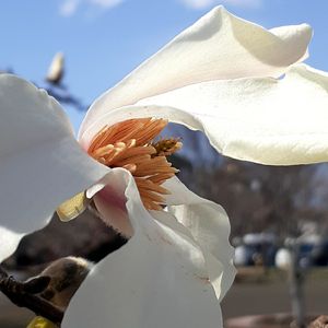今、コブシの花が咲いています。 コブシの花びらの枚数は6枚で、満開の時には全開しますが、まだそこまでいっていないようです😃 もうすぐ花が横向きや上向きに咲いて全開し、満開の景色が見られそうです😃