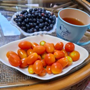 今日はスヌーピーさんの お誕生日そうで~🎵 おめでとうございます🎉✨😆✨🎊 🏷️チームスヌーに参加致します~🎵 ところで何歳かしら❓️ ブルーベリー🫐と ミニトマト🍅で🎉✨😆✨🎊 2日に一度この位の収穫があり🍅は今年の夏は買わなくて すみました🥰 ペチュニアさん✂️して挿し芽 していたらお花🌸が咲きました😍