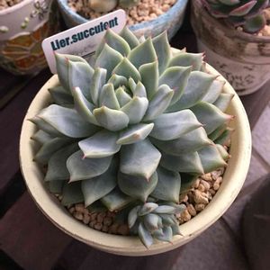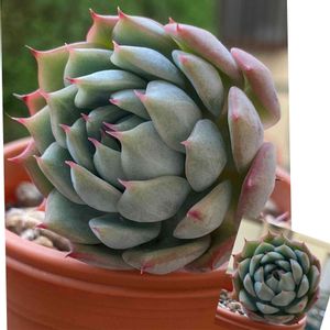うちでは、大きい方のエケベリアです。 昨日は日差しが強く、帽子かぶって植え替えしました。 …が、夜になって手の甲がガッツリ日焼けしているのに気づきました(手と、手首から上が別物…😅)