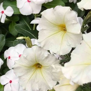 白色×白色=?美しいですね💖 ペチュニア白色、日々草白色どの花も ずーっと咲いていて欲しいですね✨