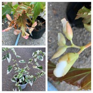 木立ベコニア 斑入りハイビスカス スノーフレイク 木立ベコニア家には有りますが ひと鉢にピンクとホワイトが入っているようなのでお迎え 斑入りハイビスカス🌺花は小型で赤い普通の花ですが 葉が涼しげでお迎え ふた鉢でワンコインでした