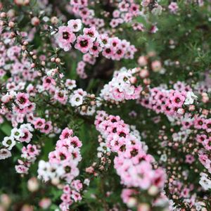 ギョリュウバイです。 数日前より花が開いて豪華になってきました💓 赤茶色の葉っぱと花の真ん中の黒いお目目の色合いがキレイ💕 オセアニアの植物だそうですよ🐨