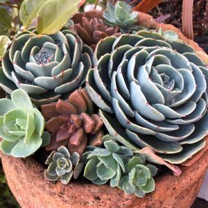 随分まえに母からもらった🐙たこツボへ 七福神を植えてみました😊