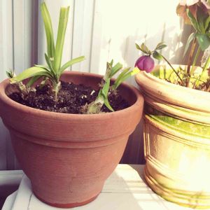 実家にて 巨大アガパンサス もう処分決定だそう・・・いる? と母ひと言に・・・場所無いんだよねぇ でも一度はそだててみてもいっかぁ?? いつも通り優柔不断なわたし 母上殿 ザクザク株を小さくして 古い鉢にスポッ! ハイ!お持ち帰り決定(☝︎ ՞ਊ ՞)☝︎ わかりやしたʅ(◞‿◟)ʃ ははぁ〜 昨日は忙しくて植え付けられなかった だいぶ葉が黄色いけど、持ちこたえられるかしら・・・👀