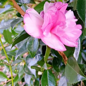 ひそかにと言うか。 1輪で 咲いてました。 サザンカです。 いつもより、薄めのピンク色で、 とても優しいサザンカです。 こんなに可愛い姿を写真に撮らないなんて 勿体ないですよね。 見つけてよかったです。💕