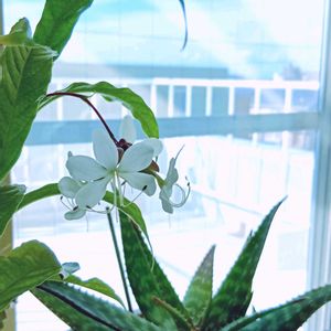 とっても、 良いお天気になりました。 クラリンドウが咲きましたあ。 待ってましたよ。 クラリンドウちゃん、 嬉しいわぁ〜🩷 ベランダ前で 日向ぼっこしていたクラリンドウちゃん アロエベラちゃんとお友達になれましたか〜?🩷💕 ♪〜☘️🍃