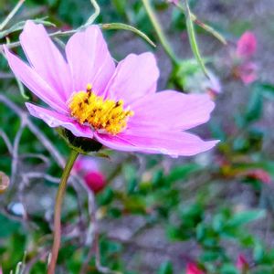 こじんまりと 小さな花びらの コスモスさん、 薄ピンク色に すこーし 濃淡があって、 背丈も大きくない。 周りに仲間の花も咲いてなくても、 とても、 強く咲いている。 そんな芯の強い コスモスさんを見た。 .....。 秋の日の ポツンと コスモス。