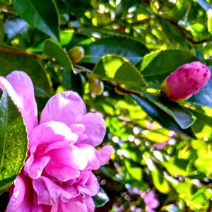 散歩中に 見つけたサザンカの花.ピンク色です。 白い花色も見つけたのに、 撮り忘れてしまいました。 どんなに派手に 咲いていても 少しも 嫌味が無くて かわいらしい。 きっと、ピンク色のせいね。 公園の中のサザンカさんでした。