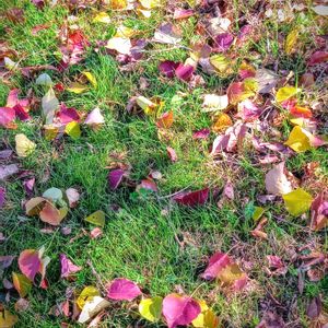 一昨日の 公園の中で、お昼前の。 素晴らしい紅葉を見ました 。 さまざまな木々が 紅葉をし、イチョウの間から枯れ葉色に 変わりつつある カエデの葉、 遠出をしなくても ここで、 もみじ狩りができました。 ゆっくりとした時間が数分でもあると、 心が 落ち着きますね。 この、紅葉した モミジの向こうは クローバー。シロツメクサとか。 みっしりと生えているので 歩いていると スポンジの上を歩くような 軽い気持ちになれます。 枯れ葉を踏みしめて 歩けば いつだったか 霜の降りる頃に 結晶を見て 蒸気が上がると 朝日が当たってる仄かな暖かさ。 遠い記憶が蘇ります。 いつも、カメラを持って 2人して写真を撮ったことも 楽しかった思い出で。 ワクワクドキドキ! それは今も変わらない。 愉しむってことは 心地よいです。 あちらのほうで、 葉っぱのシャワーを見ました‥ 素敵な 一瞬。。 わあ~、 良いものを見た思いです。おひさまの中で 葉が舞い落ちる姿も なんて! 素晴らしいのでしょう。。
