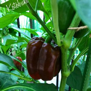 菜園から👩🌾🫑 パプリカ❤️レッドキング 💛オレンジキング 🧡ゴールドキング まだまだ💚グリーン いつになったら色づくのかな~🤔