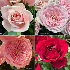 新たな年の、1月。フラワーショップの店頭に置かれる草花の色取りは、新年を祝い賑やかにしている。 昨年12月からの店頭で観るバラ、そのバラエティ---その2。 ----切りバラも一層、店頭を賑わしている。 ピンク系x3、赤系x1のバラ、4つ ・薔薇(スイートアヴァランチェ+) 外花弁はややグリーンを帯び、パウダーピンクの花びらがゆるやかに重なって、その濃淡の奥行きの深さをもつふくよかな半丸弁的高芯咲き。 巨大輪で、ピンク系のバラのなかでも、やわらかく広がるような咲き方をするバラ。いつ出逢っても魅力的な存在感のあるバラ。 花名「スイートアバランチェ」。先に出会い観た、花名「アバランチェ」のバラは、そのアバランチェは英語の「雪崩れ」。‘たぶん、迫り来る大量の白いバラの花束を雪崩に例えたのでしょう。’ ※ いつ出逢っても魅力の感じるバラだ。 ※(出典・抜粋: Ameba アヴァランチェ) そして「スイート」は「甘美な、心地よい」さまを。先の花名「アバランチェ」のバラの花色はホワイト。このバラは、‘まさに、花色が甘美なピンクバージョンアヴァランチェである‘ と、したのだろう。 ・薔薇(プリティカレン) 外の緑を含んだ白色から中へ薄い桜色、ライラックピンクを濃くし変化していく、丸みのあるシャローカップ(浅いカップ)咲きのようなバラ。 中心部がピンク、外側に行くにしたがって淡いピンクになる花弁、優しい雰囲気を醸し出し、透き通るような美しいさも持ち合わせているようだ。 花名「プリティカレン」のプリティは外見・見た目に対して使われる言葉のようであり、日本人が想像する「かわいい」よりも、もっと大人っぽい美しさに対して用いられる言葉のようである。 そして、「カレン」という女性の名前。それには色々な見方のある名前のようである。 例えば、次のように「ザックリ言うと “カレン” とは、自分が気に入らないことがあると、自分の権利を主張して文句を言い、暴走する迷惑な中年の白人女性のことを指す言葉---出典:日刊英語ライフ」 こうした女性にあっても、‘その女性の心の一種の純粋さみたいなものを、このバラのように透きとおる美しいさ中に、それと同等なるものを観てみたかった’ ということ、だろうか。 ・薔薇(ハルヒ) 淡いピンクの丸弁のクォーターロゼット咲きのバラ。 色は澄んだ淡いピンクで小さなシベ(蕊)ものぞかせている。 花名「ハルヒ」。「春の日」でハルヒと名付けられたようである。’何かしらのどかな春の日差しの中にあるバラ’ を思わせるようである。 ・薔薇(サムライ) ビロードがかった深紅の花色と花形の大輪花の半剣弁高芯咲き。 ボリューム感もありエレガントで、人気があるバラの様である。 赤いバラの代表的な品質だという。 その格調高い花姿から、花名「サムライ」は、’サムライ(侍)の秘めた何かあるもの、サムシングを思わせる一品‘ ということなのだろう。