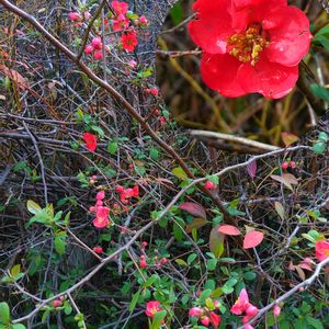 🌿❤️🧡ボケの花🧡❤️🌿 我が畑で30年以上は咲き続けているボケの花濃い橙色です 今年も沢山花をつけました~😍🎶🥰🌿❤️🧡