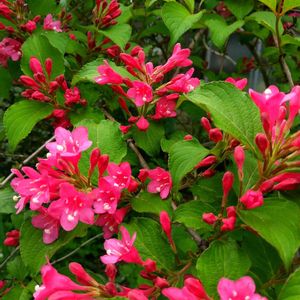🌿❤️💗タニウツギ💗❤️🌿 スイカズラ科 タニウツギ属 ピンクの花がラッパ状にシダレ咲く ノリウツギやウツギ、ミツバウツギとは別の中間です🙄😙 畑の端で40年以上の大木になっています(*^ー^)ノ♪♪(´ε`*)🌿❤️💗🥰⬇️