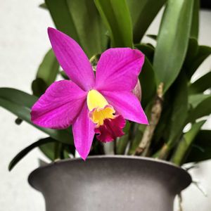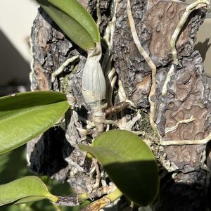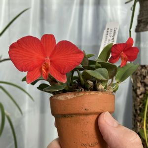 Lc.Dorothy Oka ‘Hinomoto’ レリオカトレア ドロシーオカ ‘ヒノモト’ 今年は一輪ですが、咲きました♪ 2020年に根っこを全て腐らせて💦木につけたら芽を出して、根っこを出して、2023年からお花を咲かせてくれるようになりました✨✨ 2枚目は2020年の頃の写真です