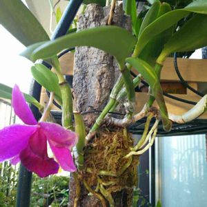 先日の投稿にいいね👍くださったみなさんありがとうございました🎵 板付のカトレア、咲きましたよ🎵 左右にリード、板の端まで来ています。このあとどうしよう…