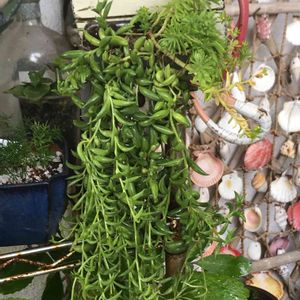 木箱の雑貨に グリーンネックレス遠 植え込んでいます。