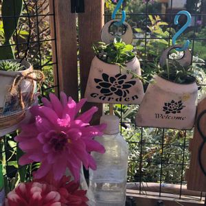 春に続いて 秋にも咲いた大輪ダリア 2種切り花にして ガーデンテーブルに 飾りました。