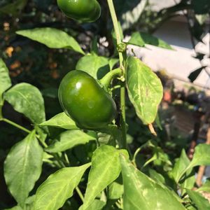 パプリカそれともハバネロの種類 昨年、1個付けた実から 種を採り播種 発芽した苗にたくさん黄色の実が付きました。
