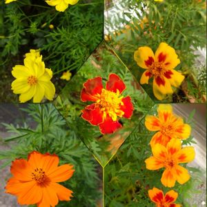 マリーゴールドと キバナコスモス 夏🎐から秋🍁へ お花から季節の移り 変わりを感じました。 鮮やかな夏と秋の色 🥰 肱川清流の里にて。
