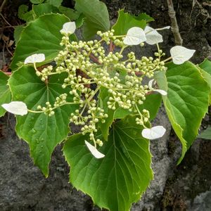 涼やかで変わったアジサイかと〜 違ってました。 イワガラミといいました。 岩にしがみ着く 強い植物でした。