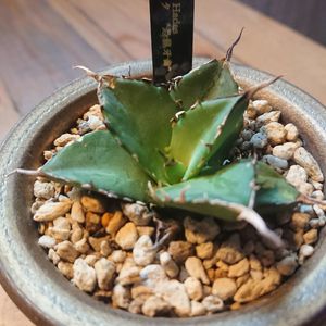 アガベチタノタ ハデス🌵 陶器鉢 3号 ミニミニだけど、まあ高いですね😅 購入したら黒いタグ付けてくれました✨ 以上