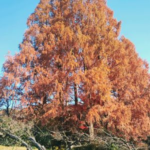 メタセコイア🌲 名古屋市東谷山フルーツパークにて 堂々たる大木、赤茶色に色付いてました😊 春にまた訪れたいな(枝垂れ桜の名所です) 🏷️木曜日は木